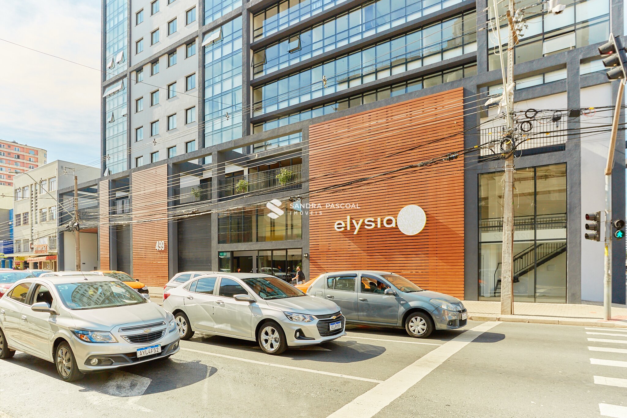 Localizado no Centro de Curitiba, no Edifício Elysia, com fácil acesso a serviços, transporte e conveniências da região.