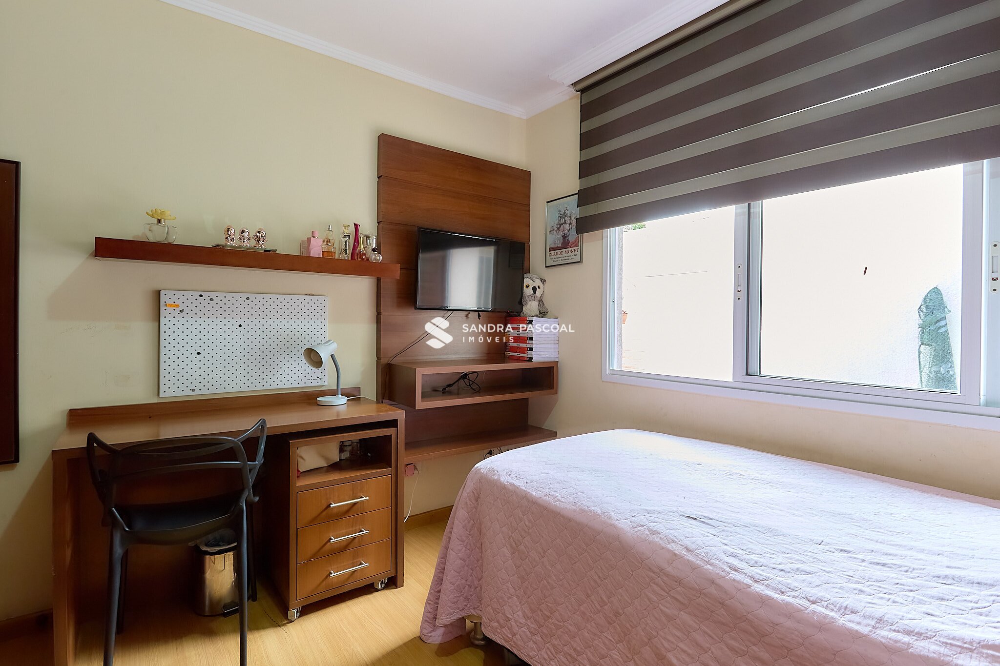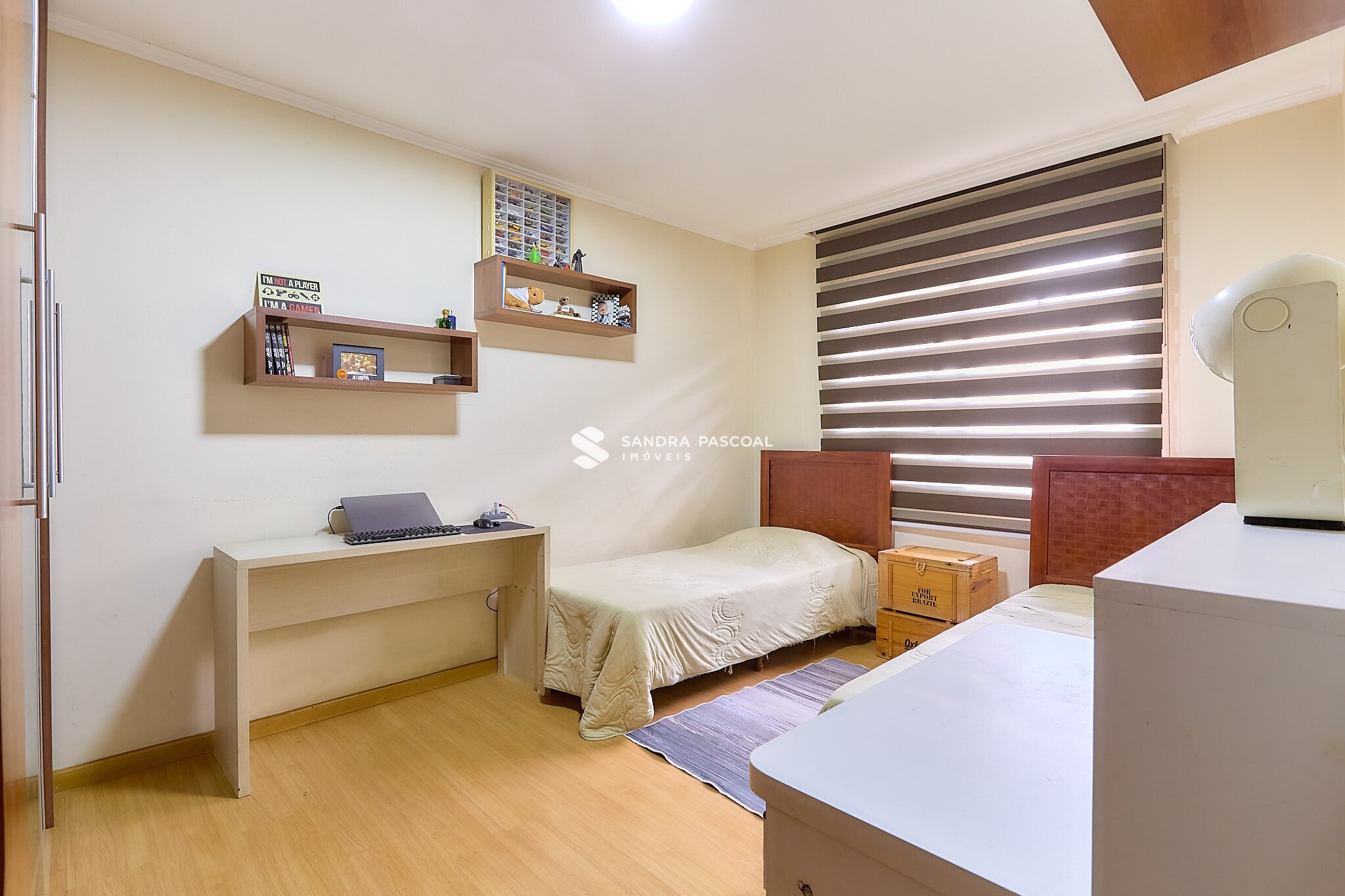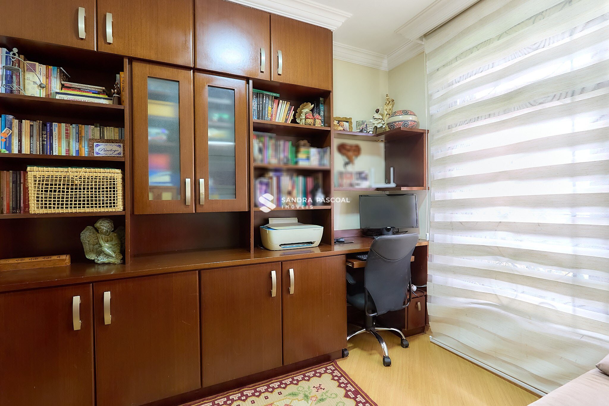 A casa ainda conta com um ambiente reservado que pode ser utilizado como escritório ou home office, ideal para quem trabalha de casa ou precisa de um espaço funcional extra.