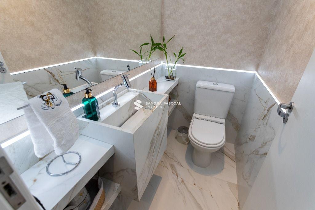 A área social possui sala em desnível, que agrega charme e sofisticação ao ambiente entre o estar e o jantar, integrando a cozinha para ótimos momentos em família e amigos. E um lavabo decorado que completa o conforto no pavimento social.