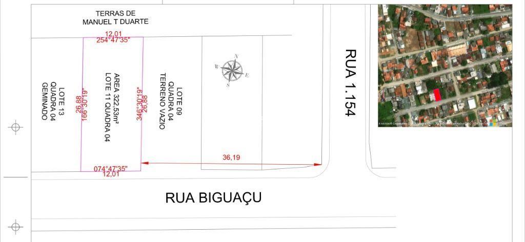 Área total de 322,53 m2, sendo 12 ,01 de testada e 26,88 de fundos.