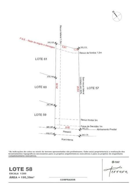 Lote nº 58 com 195,39 m² de área privativa do lote, área total de 635,76 m2